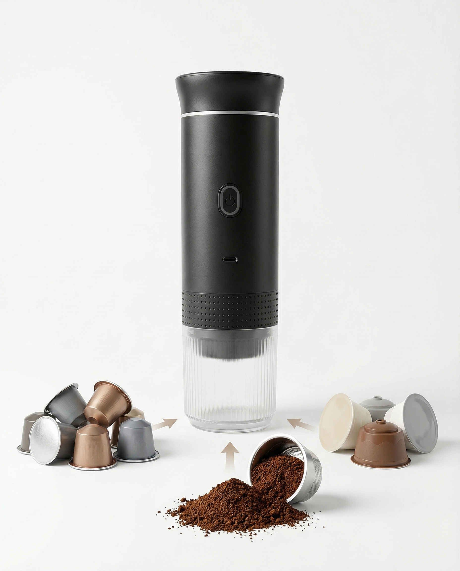 Real espresso — in a hotel room, at your desk, in your car, or outdoors.