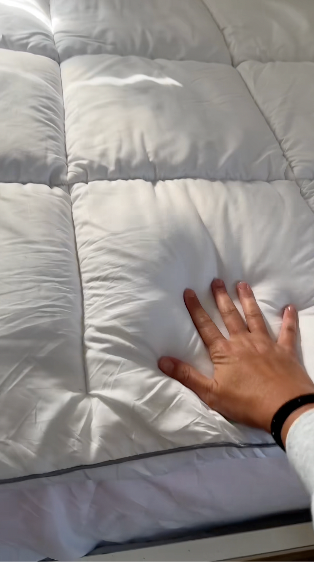 “I was about to replace my mattress because it felt too firm and uneven. Instead I tried this topper and it completely changed how my bed feels. The thickness and loft are honestly impressive — it feels plush without sinking too much. It reminds me of the beds in nicer hotels. I’m sleeping deeper and waking up without the shoulder pain I used to have.”